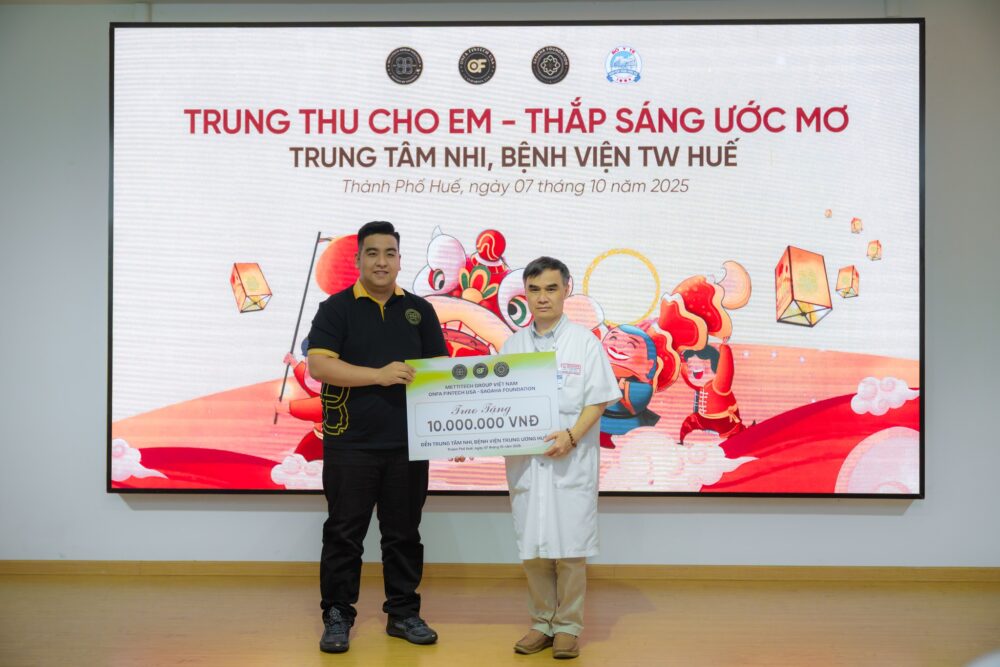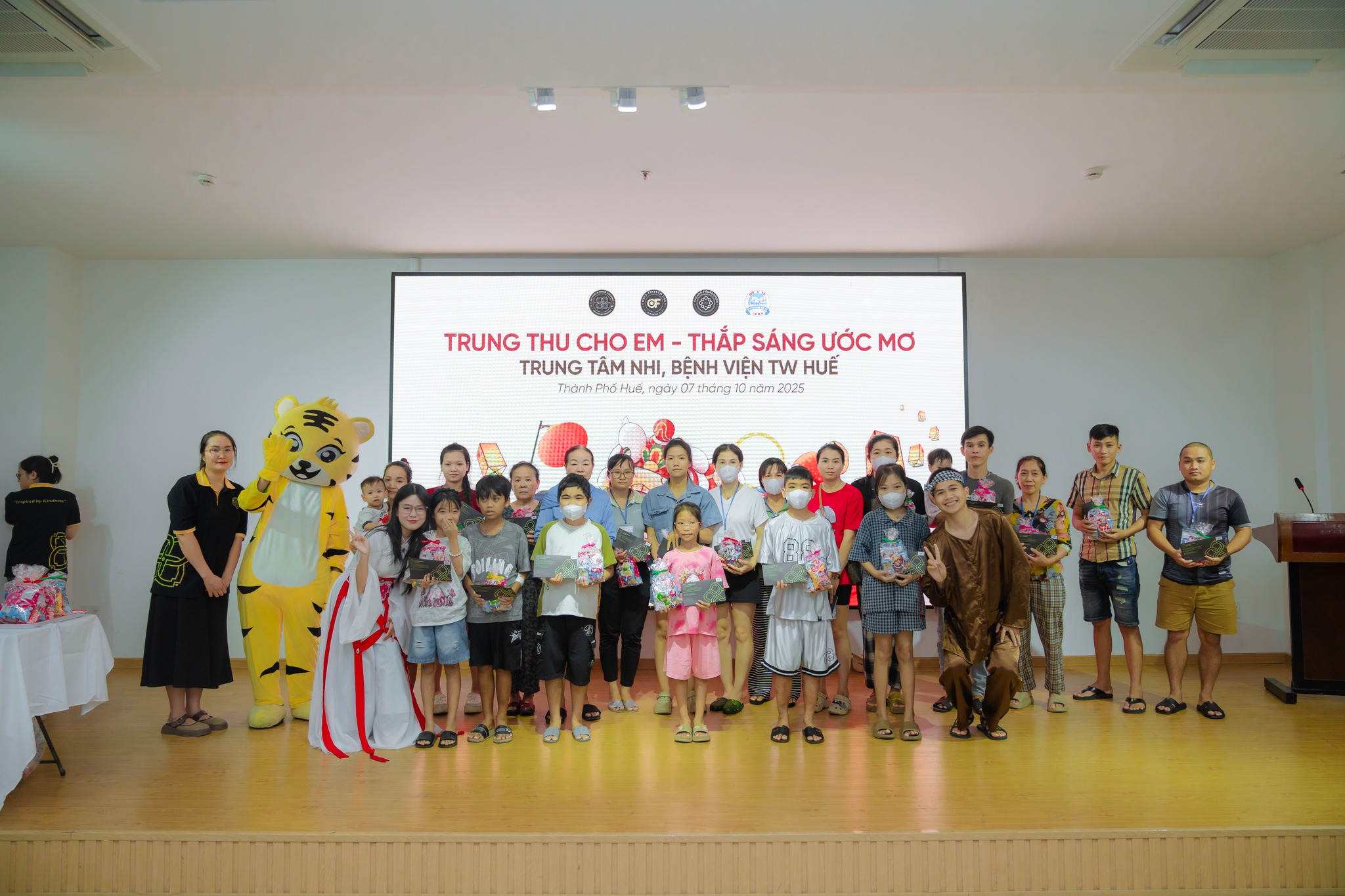 On October 7, 2025, the Pediatrics Center of Hue Central Hospital became warmer and more joyful than usual as the program “Mid-Autumn for Children – Lighting Up Dreams” was held by Sagaha Foundation, in collaboration with Mettitech Group Vietnam and ONFA Fintech. This meaningful activity aimed to bring happiness and emotional support to young patients spending their Mid-Autumn Festival undergoing treatment at the hospital.